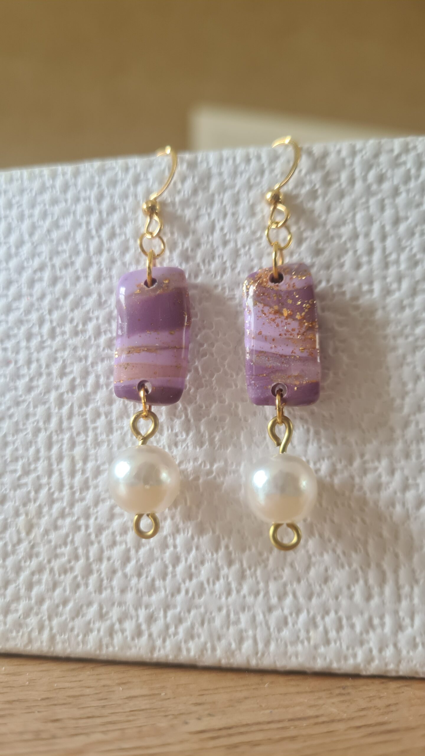 Prachtige roze / paarse langwerpige kraal boven een parel met een goudhaakje lengte ongeveer 6 cm