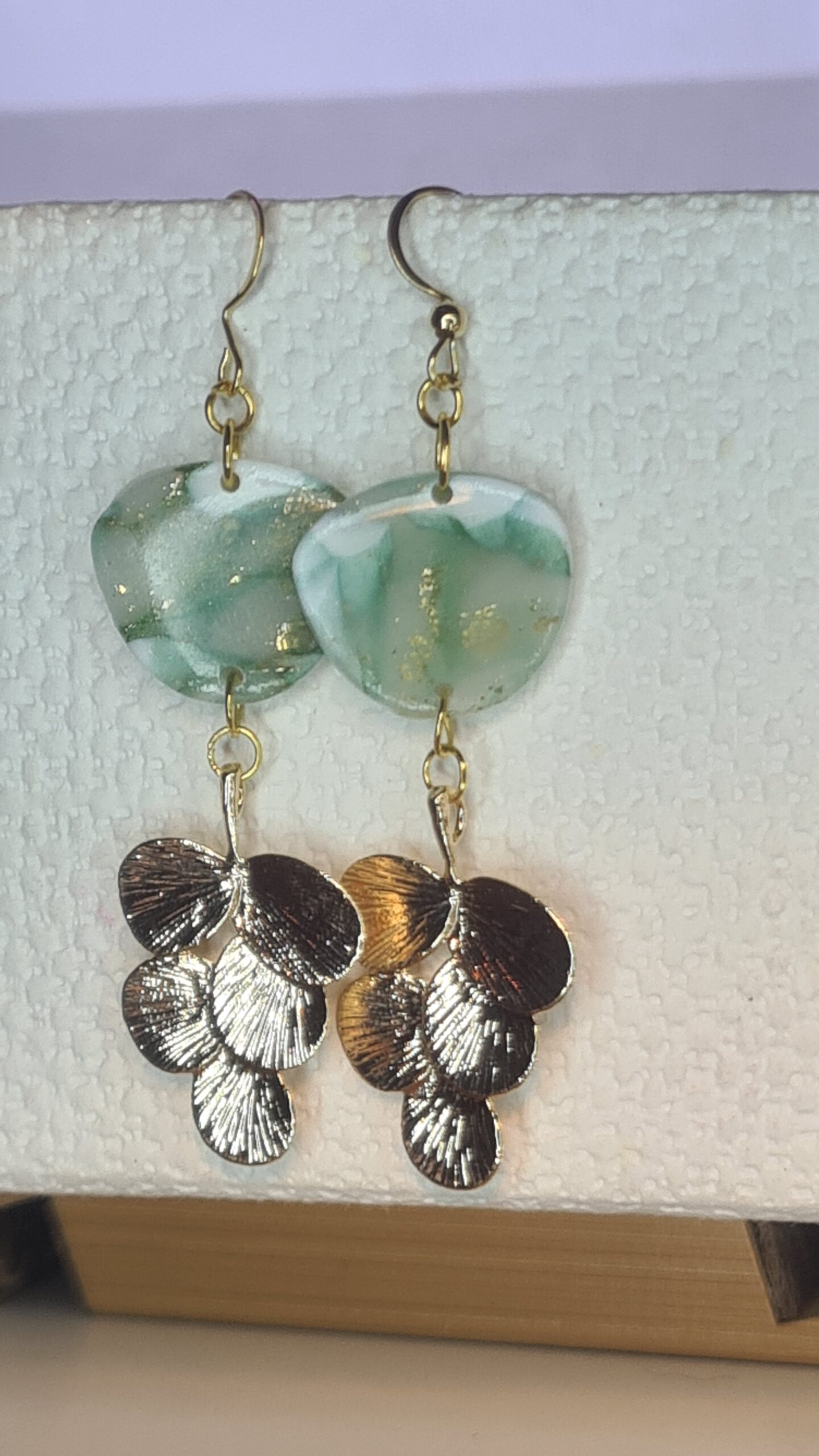 Prachtige groen/witte marble kraal boven een aansprekend gouden ornament.
