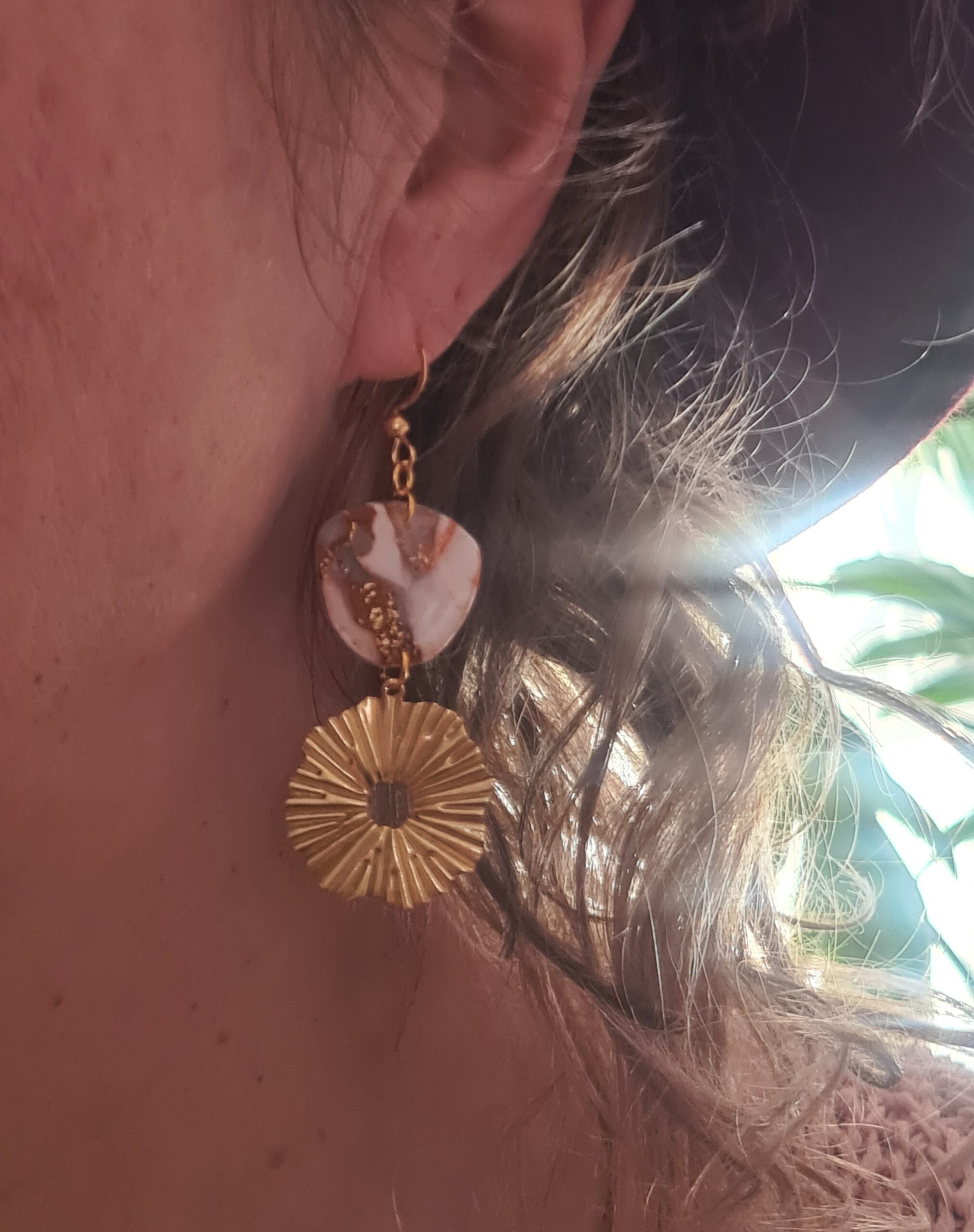 Prachtige brons marble kraal boven open ronde ornament