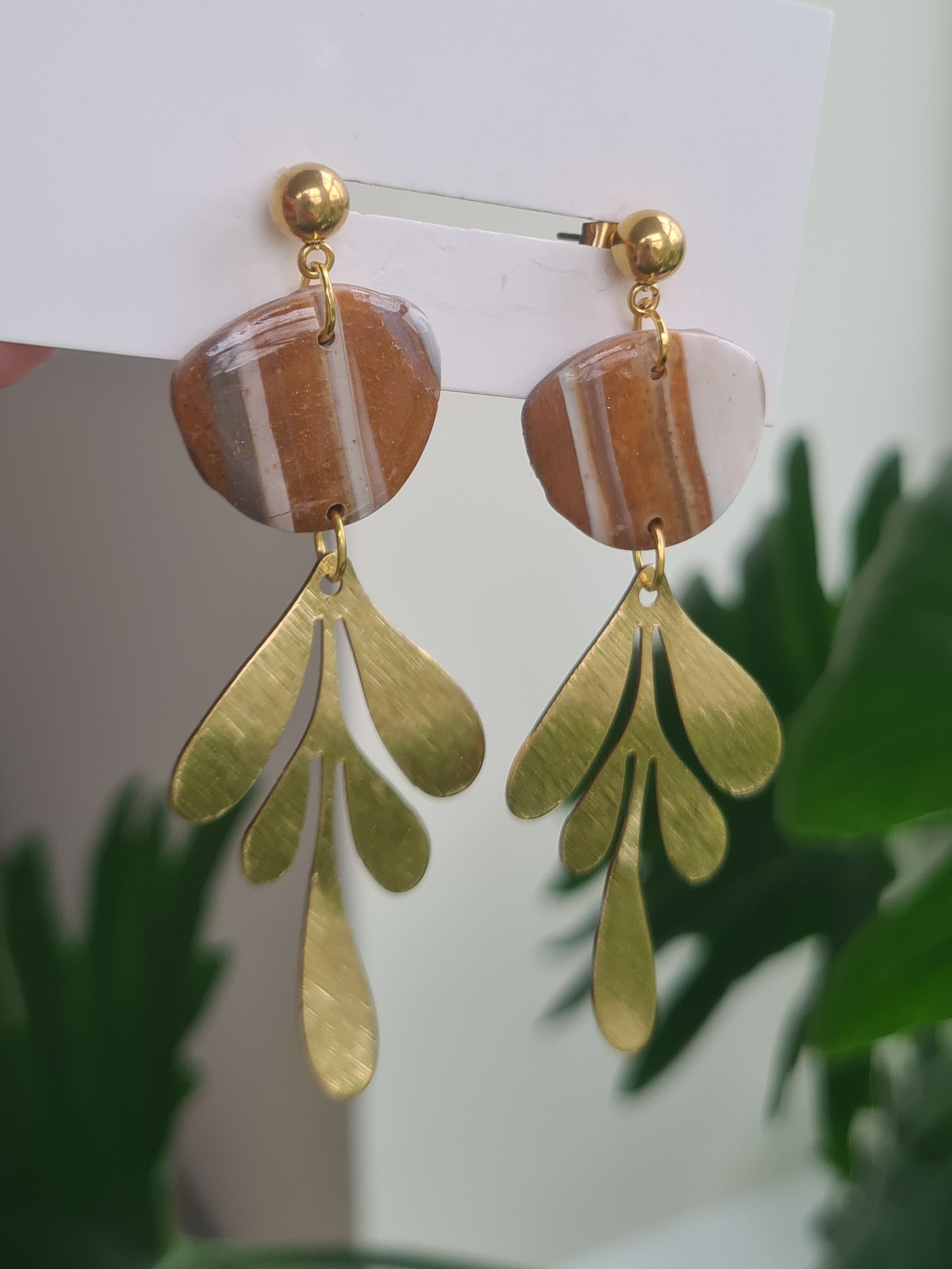 Prachtige natural look kraal met kleine steepjes boven gouden 7 blad.