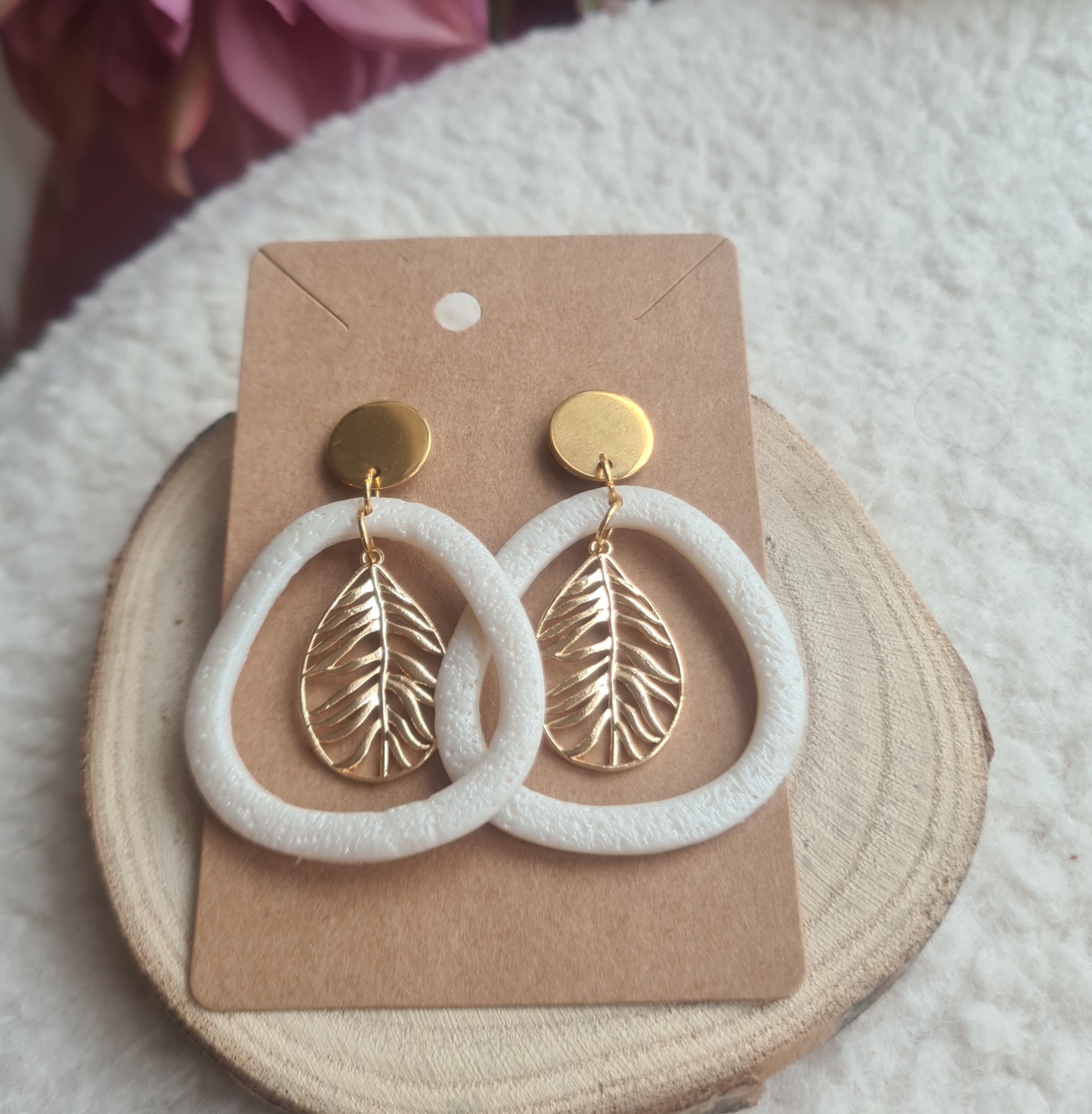 Middelgrote open hangers met gouden blaadje aan gouden stekertje.