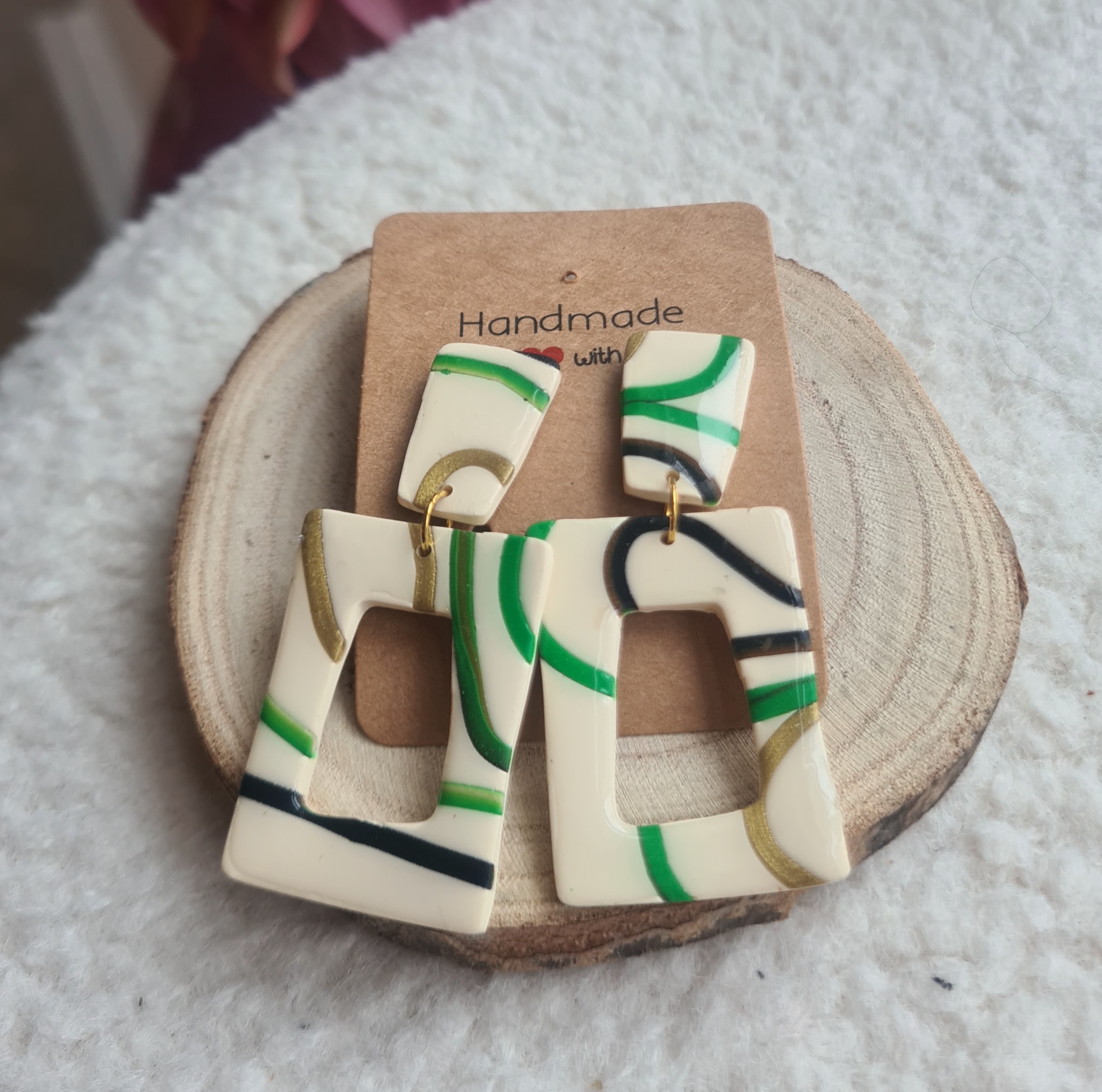 deze rechthoekige variant met creme basis en zwart en groene accenten