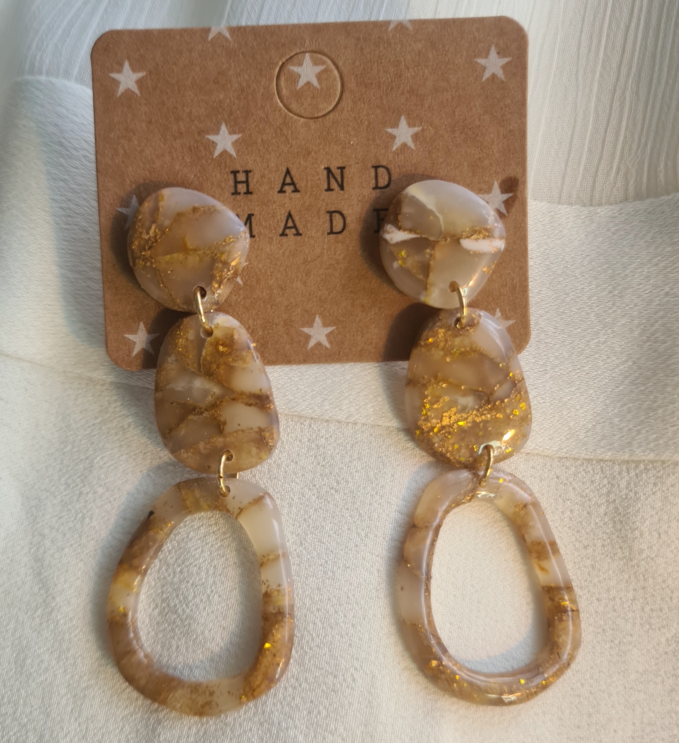 Lange hangers bestaande uit beige marble look kralen aan eigen steker